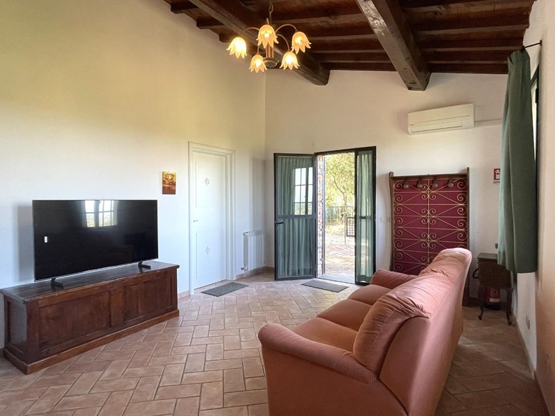 Affittasi graziosa casa singola su due livelli, immersa nella tranquillità della campagna, con vista sul borgo di San Miniato, dal quale dista pochi chilometri. Appena varcata la soglia si entra nel luminoso soggiorno con camino, ambiente caldo e accogliente, con il soffitto in legno. Sul lato destro si trova la cucina attrezzata con zona pranzo. Dal soggiorno si accede ad un bagno finestrato ed alla scala che porta al piano inferiore dove trovano posto due camere matrimoniali e un bagno con doccia. Una delle camere ha accesso diretto al giardino retrostante mentre l’altra prende luce da una finestra a “bocca di lupo”.