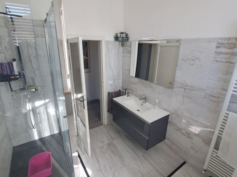 Rosignano S. in Villetta quadrifamiliare Appartamento al piano primo con ampio e godibile Giardino composto da: ingresso Soggiorno con angolo cottura e Terrazzo chiuso con veranda – Sala - 3 Camere - Ripostiglio/lavanderia- 1 Bagno ampio con doccia - riscaldamento autonomo a metano – RISTRUTTURATA con nuovi pavimenti, impianto elettrico -