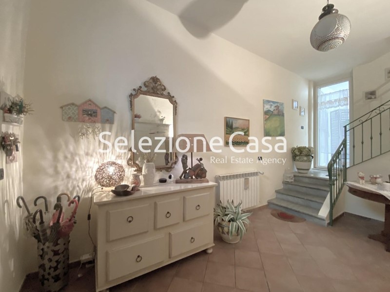 È una casa ristrutturata con gusto, dove il calore del parquet si unisce al fascino delle antiche mura a vista, creando un ambiente che trasmette comfort e autenticità.