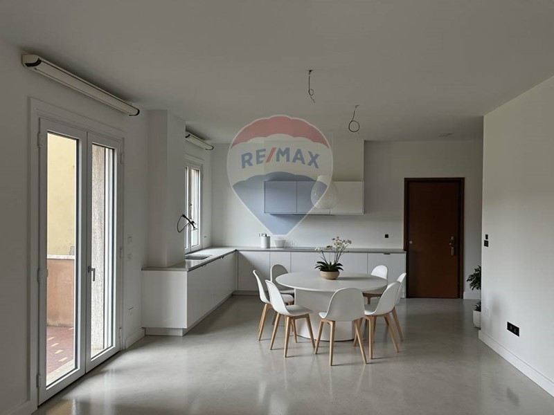 Lingresso conduce ad un ampio e luminoso soggiorno con cucina a vista, caratterizzato da ampie finestre che conducono al primo balcone. La zona giorno, studiata per garantire funzionalità e design, è predisposta per un impianto di climatizzazione moderno.