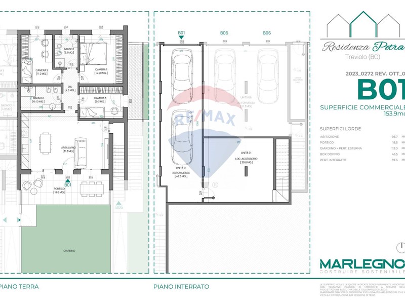 Disponibili soluzioni al piano terra con giardino privato e porticato, oppure al primo piano con ampie terrazze vivibili.