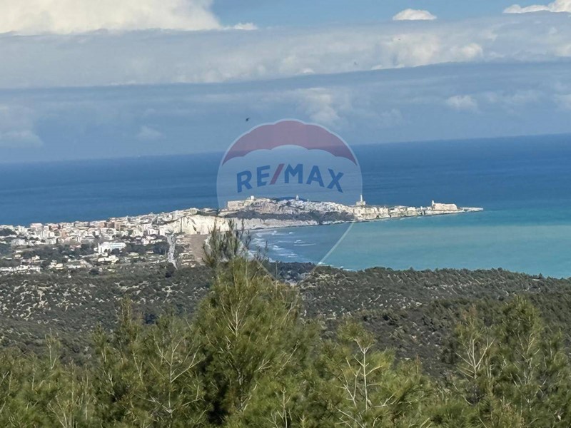 Da ogni angolo della proprietà si apre uno scenario spettacolare: il blu intenso del mare, la costa frastagliata e, sullo sfondo, il profilo bianco di Vieste che si staglia contro il cielo.