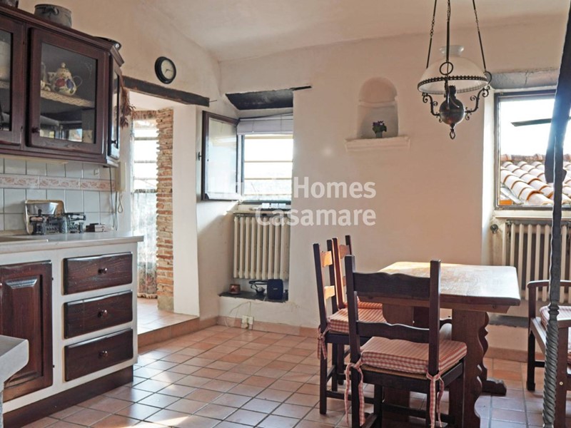Labitazione principale si sviluppa al primo piano, dove troviamo una luminosa zona giorno con accesso diretto allampio terrazzo: uno spazio ideale per pranzi allaperto, momenti di relax e per godere della bellezza del paesaggio circostante oltre che della ottima esposizione al sole. Adiacente alla sala si trova una cucina abitabile con angolo cottura in muratura e travi a vista, elementi che conferiscono calore e carattere allambiente.