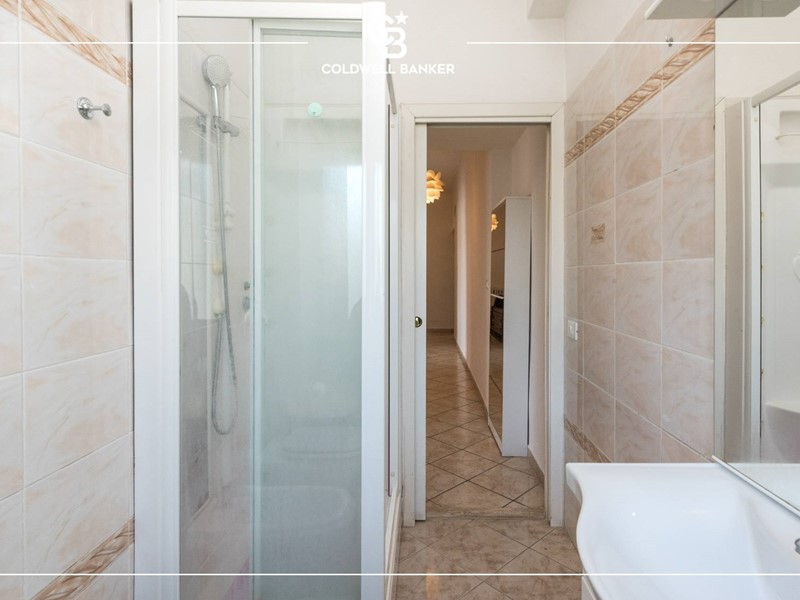 La distribuzione degli spazi interni, accurata e di concezione classica ha dato luogo a spazi ampi, ben fruibili ed arredabili con facilità. Subito all'ingresso si presenta un ingresso arredabile; l'ampio soggiorno dispone di due finestre che rendono l'ambiente molto arioso e luminoso, di una cucina a vista e dell'accesso al balcone ben esposto ad ovest. La zona notte si raggiunge attraverso un corridoio di collegamento con la camera matrimoniale di comoda metratura ed il servizio finestrato munito di doccia.