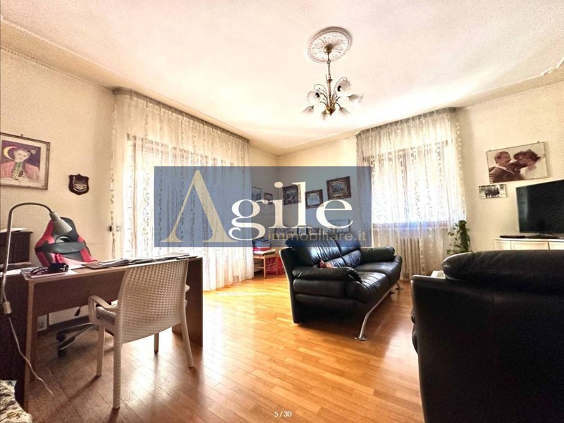 L'unità delle dimensioni di 144,00 mq circa composto da sei locali sito al piano primo di un condominio senza ascensore con esposizione su tutti i lati, risulta così suddiviso: ingresso su corridoio, cucina abitabile con camino, ampio soggiorno, un'ampia camera matrimoniale una seconda camera matrimoniale con antibagno e bagno con box doccia, due camere singole e un bagno principale con vasca; balconi a servizio di tutti i lati.