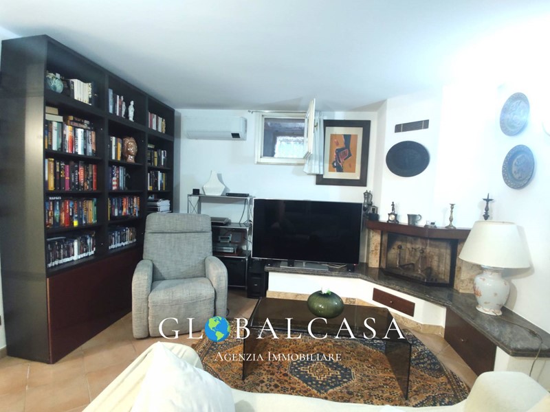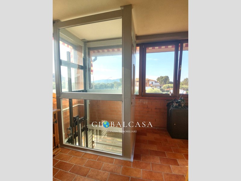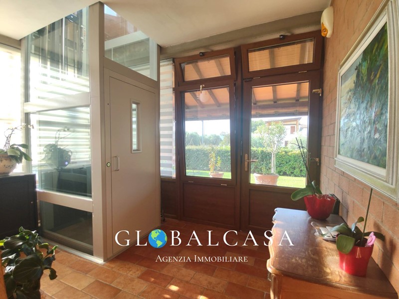 al piano terra doppio ingresso per la sala e la cucina, entrando dal portico alla veranda troviamo un'ascensore a servizio del piano terra, primo e seminterrato (taverna) dalla veranda si entra nella cucina in muratura con terrazza, una grande sala con terrazza, scala a giorno che porta agli altri piani, al primo c'e' la camera matrimoniale con terrazza dove arriva l'ascensore ed altre due camere, bagno con balcone, al piano superiore (secondo piano) mansarda con bagno, al piano seminterrato taverna (servita da ascensore) con predisposizione attacchi per cucina e collegata al garage con scannafosso tutto intorno alla casa utilizzato come zona lavanderia.