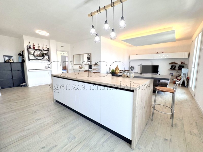 L’appartamento situato al secondo ed ultimo piano si apre su una bellissima zona giorno con cucina openspace, tre camere (matrimoniale, doppia e singola), un bagno finestrato ed uno cieco con ben quattro terrazze disposte su tre lati.
