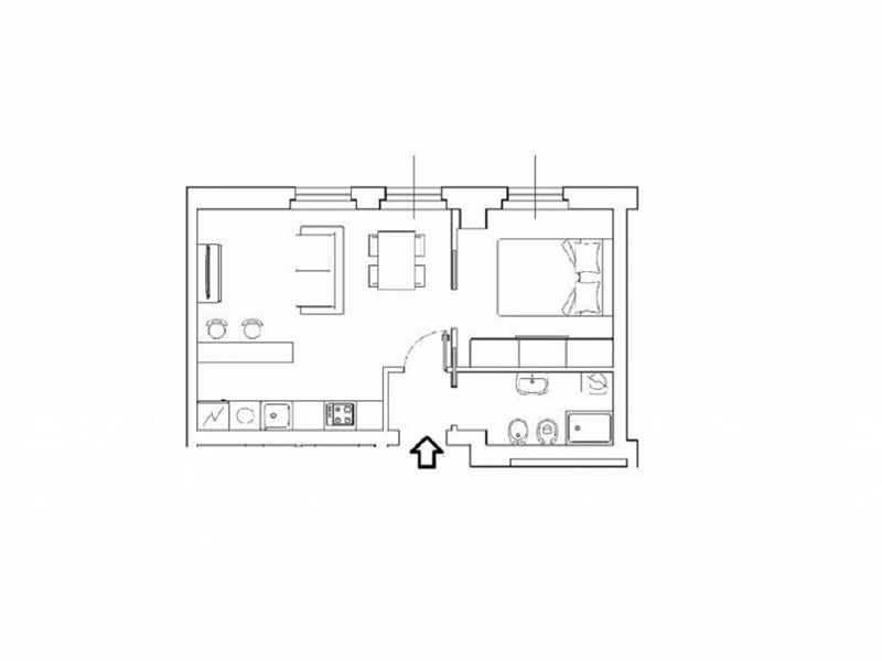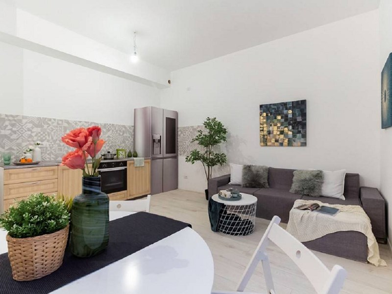 Appartamento bilocale completamente arredato posto al secondo piano composto da ingresso, soggiorno con cucina a vista, camera e servizio cieco. Internamente l’immobile verrà consegnato COMPLETAMENTE RISTRUTTURATO A NUOVO in stile moderno ed espone esternamente.