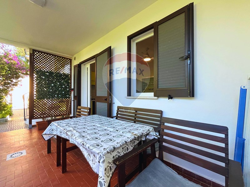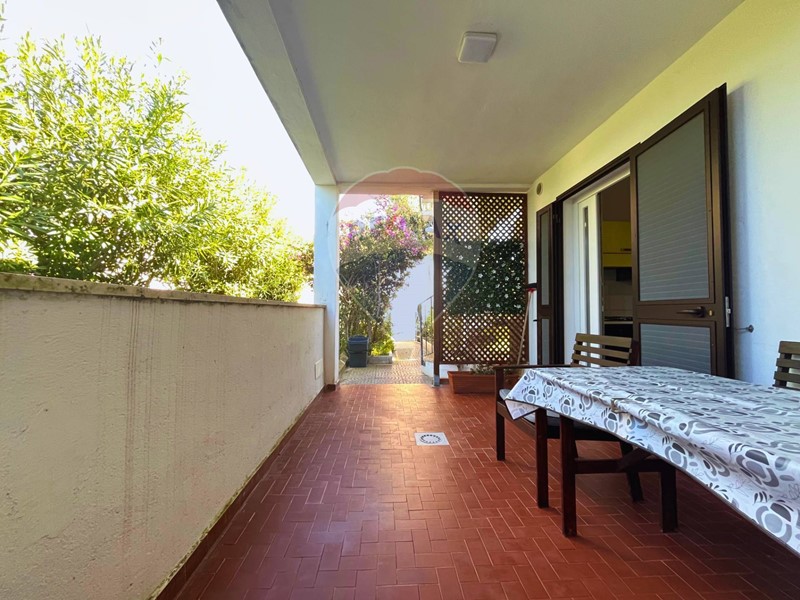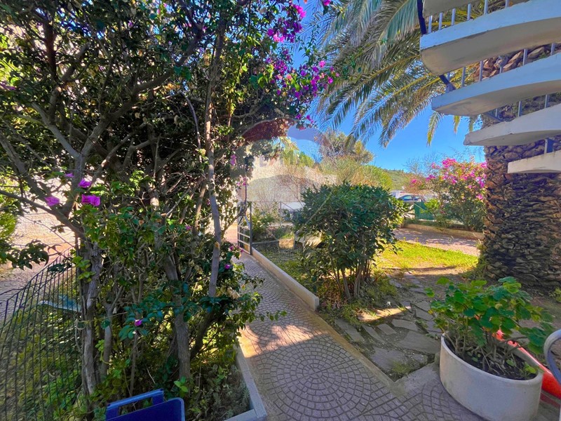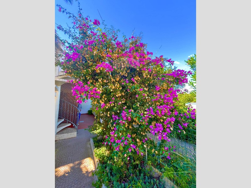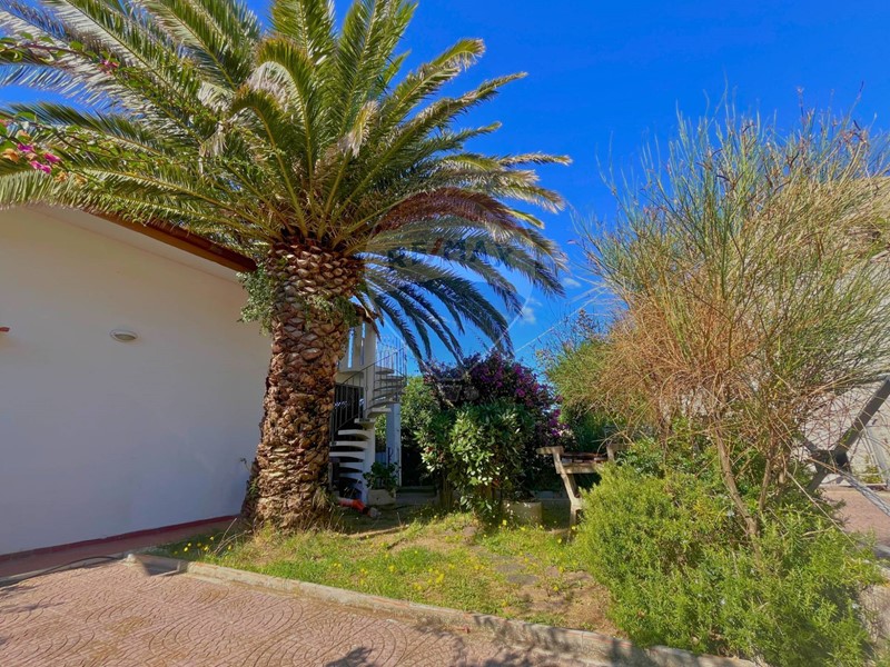 Limmobile si trova a circa 850 metri dal mare, in POSIZIONE SOPRAELEVATA e ariosa, ideale per godere della brezza marina anche nelle giornate più calde. Si accede alla proprietà da un GIARDINO AMPIO E CURATO, con una bellissima PALMA che regala ombra naturale, cespugli di bougainvillea viola e un comodo BARBECUE IN MURATURA: lo spazio perfetto per cene estive sotto il cielo stellato, in unatmosfera intima e riservata. Di notte, la visione del cielo è limpida e le stelle appaiono nitide, rendendo ogni momento allaperto indimenticabile. Nel giardino è presente anche un tavolo in muratura dove godersi pranzi e aperitivi in totale relax. Da qui, si accede a un PATIO COPERTO pavimentato in cotto, attualmente utilizzato come zona pranzo allaperto, ma facilmente trasformabile in VERANDA, ampliando così ulteriormente la superficie vivibile dellimmobile. Va segnalato che il giardino ha un diritto di passo per laccesso allunità sovrastante.