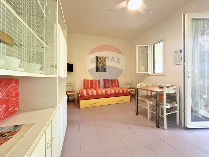 La zona giorno è spaziosa, luminosa e ben organizzata: pavimentata con piastrelle chiare, ospita unAMPIA CUCINA con dispensa, tavolo da pranzo e due ulteriori posti letto grazie a un letto matrimoniale a scomparsa con letto scorrevole sottostante. La presenza di una grande finestra e di una porta finestra rende questo ambiente sempre luminoso e arioso. Limmobile non è dotato di aria condizionata, ma linstallazione è semplice, e la zona è naturalmente ventilata. Le PALE A SOFFITTO con luce integrata aiutano a mantenere una temperatura gradevole in ogni stagione.