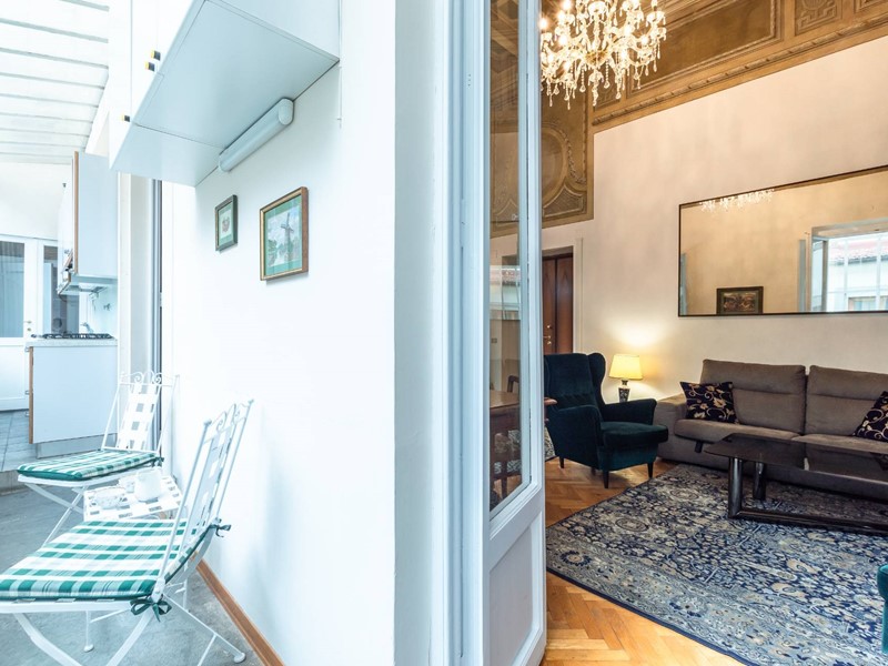Ci troviamo nel cuore della splendida Firenze Rinascimentale, ad un passo dalla meravigliosa Basilica di Santa Croce, alla via Ghibellina, per proporre in affitto un prestigioso appartamento situato all'interno del Cinquecentesco palazzo Salvetti Sebregondi. Questo immobile è perfetto per chi cerca una soluzione abitativa di rappresentanza come si intuisce già dall'androne del palazzo. L'appartamento, nella zona giorno, presenta un accogliente salone dai soffitti affrescati ed un cucinotto su una veranda con affacci sulla corte interna, mentre nella zona notte un disimpegno ci permette di accedere ai due servizi o alla camera con cabina armadio. La camera presenta un bel letto su un ricco soppalco in legno lavorato, ma se desiderato è possibile anche dormire nel letto al piano inferiore. Immobile arredato con gusto e molto particolare. Contratto transitorio per massimo un anno, immobile libero dal primo novembre. Il canone di locazione non comprende le spese condominiali che ammontano a circa 100 mensili. Solo persone referenziate con garanzie. Contratto di locazione transitorio.