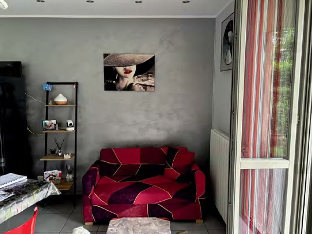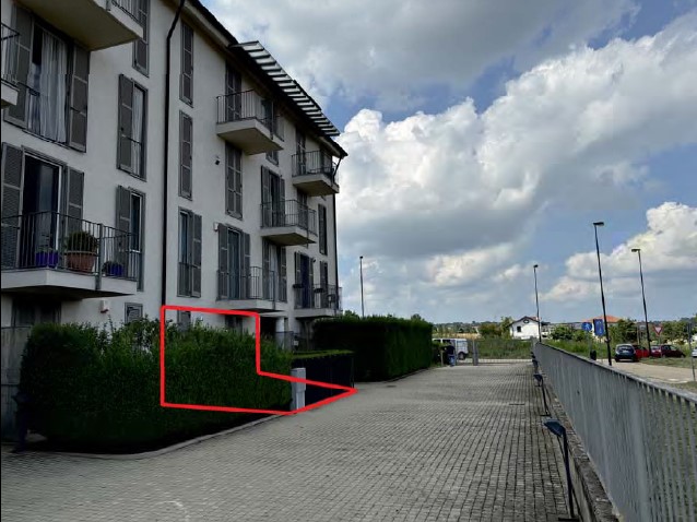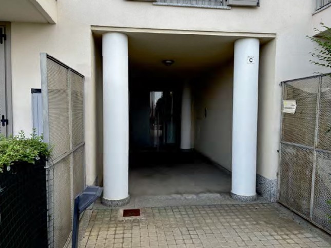 - con accesso dalla scala “C”, al piano terreno (1° f.t.), alloggio con annessa corte in uso esclusivo antistante e frontistante, composto di ingresso su soggiorno con angolo cottura, disimpegno, ripostiglio, camera e bagno;