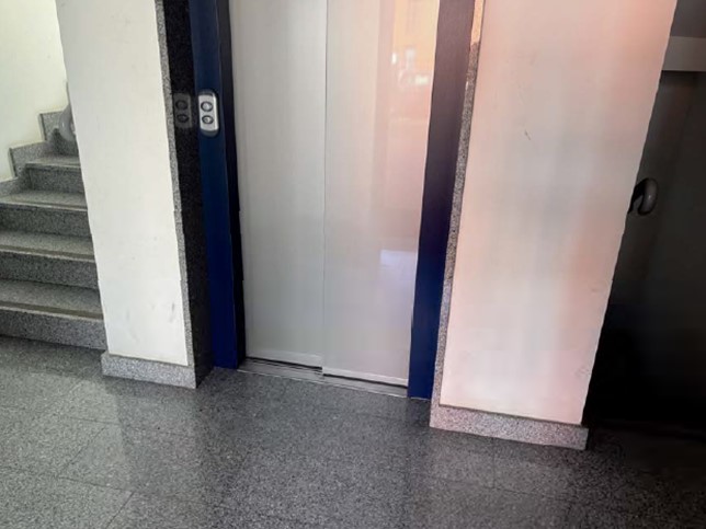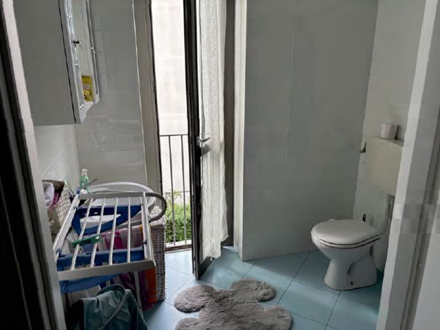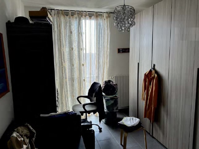 - con accesso dalla scala “F”, al piano secondo (3° f.t.), alloggio, composto di ingresso su soggiorno-cucina, disimpegno, due camere, doppi servizi e ripostiglio;