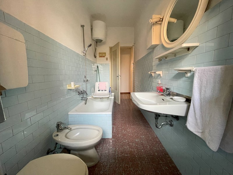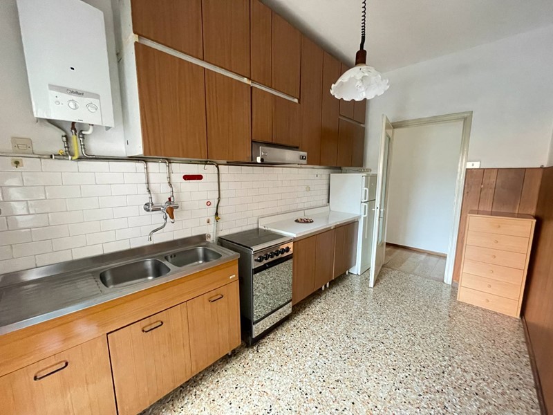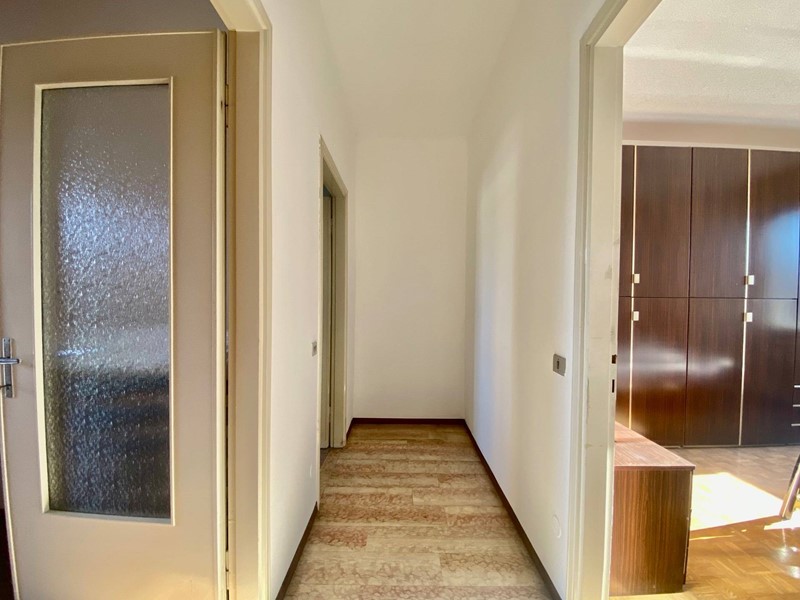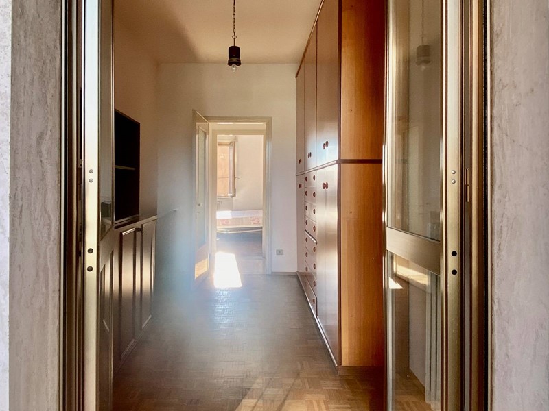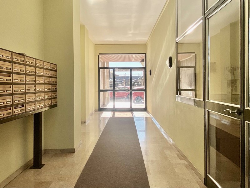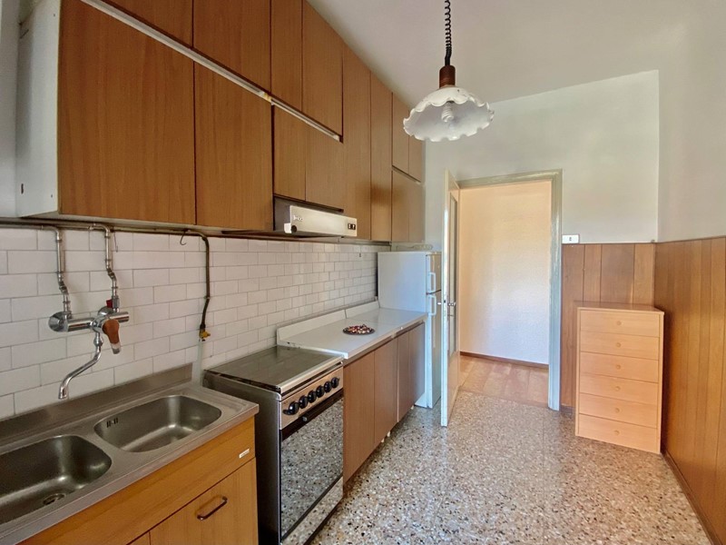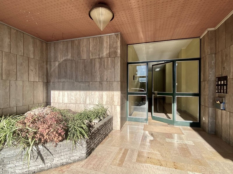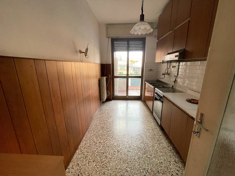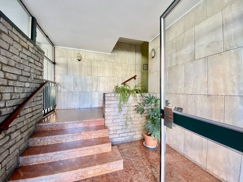 Servito da ascensore, l'ingresso si apre su un comodo disimpegno che conduce alla zona giorno, composta da ampio e luminoso soggiorno e da una cucina abitabile con accesso a un balcone.