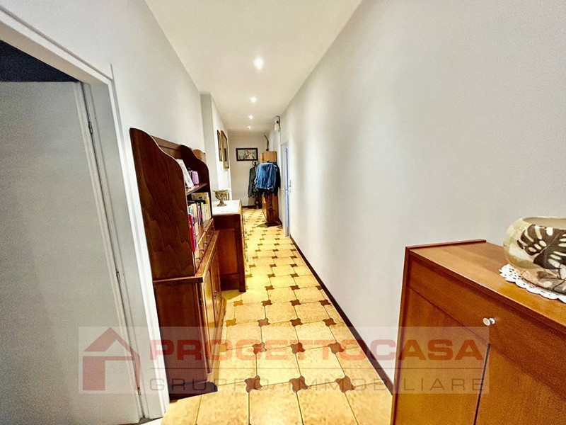 - Primo piano (135 mq): impianti originali, composto da sala pranzo con balcone perimetrale e terrazzo di 45 mq, cucina e retro-cucina con balconcino, tre camere da letto (due matrimoniali e una doppia), bagno finestrato con vasca. Infissi in legno con vetro singolo.