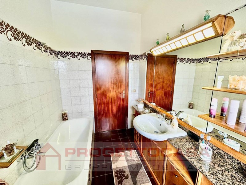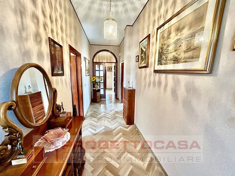 - Piano terra (135 mq): completamente ristrutturato nel 2024, composto da luminoso soggiorno-cucina con camino termo-ventilato, due camere matrimoniali, doppi servizi finestrati con box doccia, una seconda cucina abitabile e corridoio di collegamento. Infissi in legno con doppio vetro.