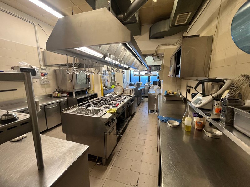 il ristorante è composto da una sede esterna copribile nel periodo invernale oltre la grande sala intern, i bagni sono a norma di legge la cucina grande e completa di tutti gli accessori, oltre a questo è stata creata una zona pizzeria a vista, all'esternosul retro altro accesso per i fornitori oltre un annesso che fa da magazzino.