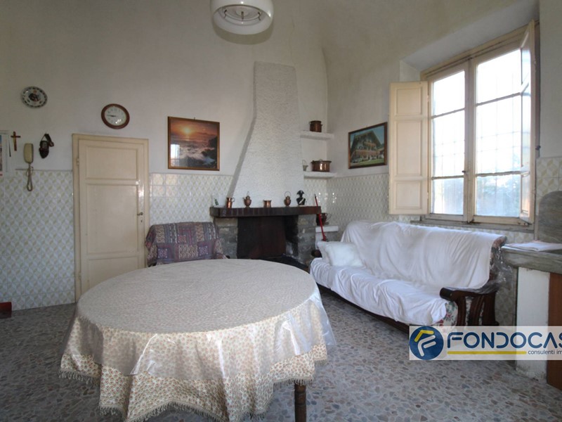 La casa ha un ingresso bifamiliare ma non ci sono spese condominiali ed è cosi composta: l'ingresso dal vano comune ci accompagna nella prima cucina che rimane separa dalla sala con camino e da una seconda cucina. Tramite una scala interna condominiale, arriviamo al primo piano dove abbiamo le quattro camere da letto matrimoniali e il bagno con finestra e doccia. Oltretutto è presente anche la soffitta.