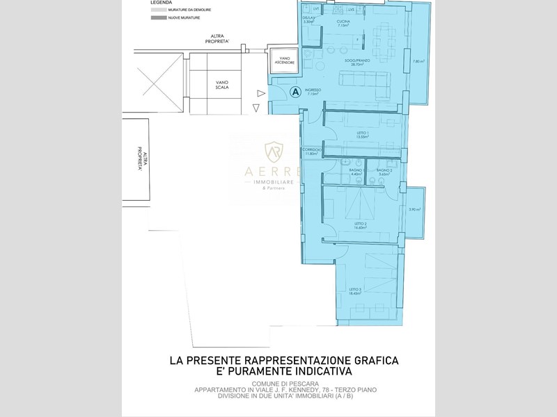Si specifica che la soluzione indicata nella rappresentazione grafica è puramente indicativa, personalizzabile ed ha il solo scopo di individuare i mq in vendita.