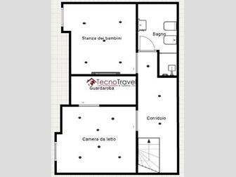 - Piano inferiore: camera matrimoniale con cabina armadio, cameretta e bagno di servizio con doccia