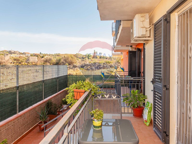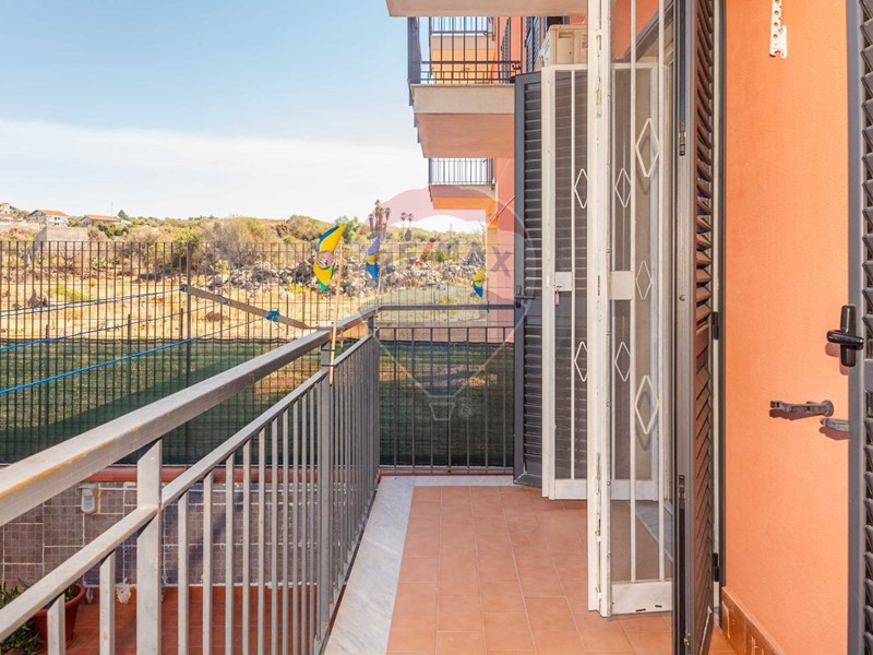 Dal soggiorno si accede al balcone e al terrazzo, perfetti per godersi una vista mozzafiato sull'Etna e per trascorrere momenti di relax all'aria aperta.