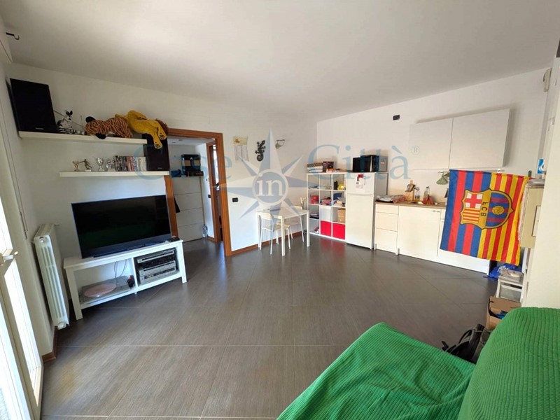 Lappartamento è così composto: ingresso, soggiorno con cucina a vista e accesso a un comodo terrazzo, camera matrimoniale con cabina armadio e bagno finestrato.