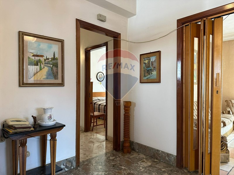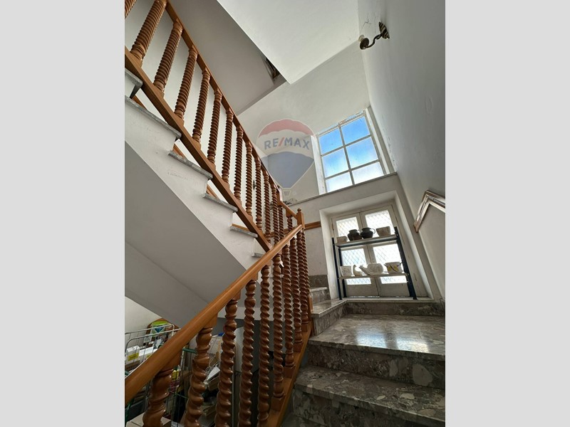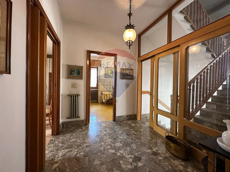 Lingresso principale al piano terra di questa abitazione si apre in ampio disimpegno che raggiunge il piano primo con una comoda scala, tutto pavimentato in marmo con balaustra forgiata in legno.