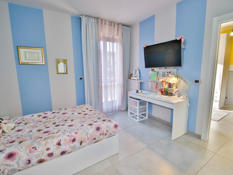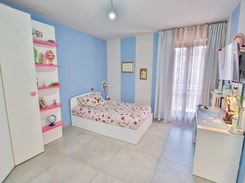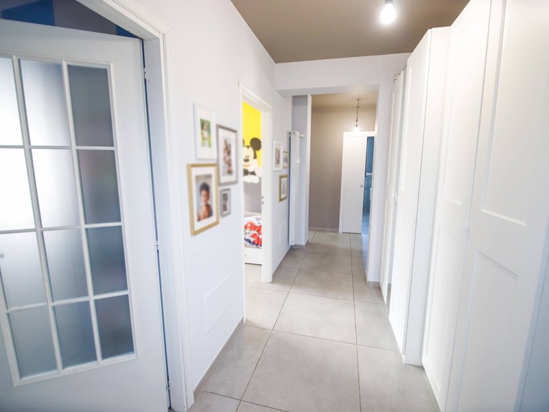 Internamente è composto di: ingresso/disimpegno, cucina abitabile, sala/soggiorno TV, tre camere da letto, doppi servizi e 4 balconi; nel prezzo è compreso anche il garage.