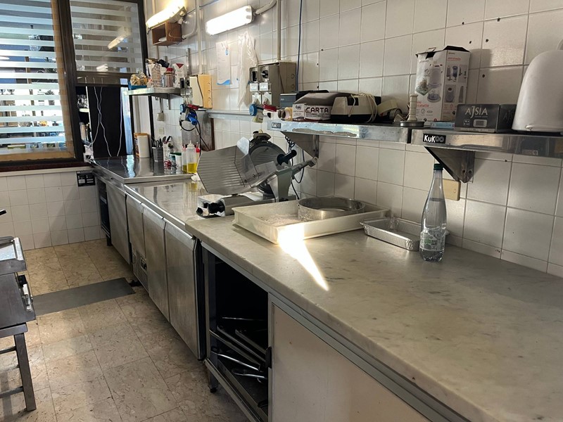 il ristorante ha circa 80 posti di cui 50 interni e 30 esterni, la cucina è a vista e è divisa fra la zona di cottura e preparazione e lavaggio in altro ambiente, i bagni sono a norma e il locale ha anche un magazino per lo stoccaggio di merce e spogliatoi per il personale