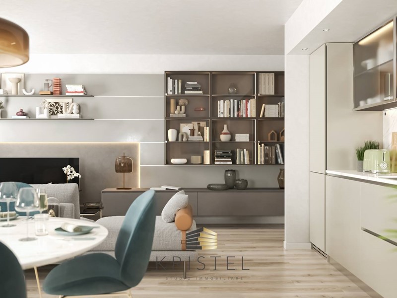 La zona living presenta spazi luminosi e ben definiti per collocare una cucina a vista con comodo tavolo + zona tv con salotto e creare un ambiente caloroso e di rappresentanza.