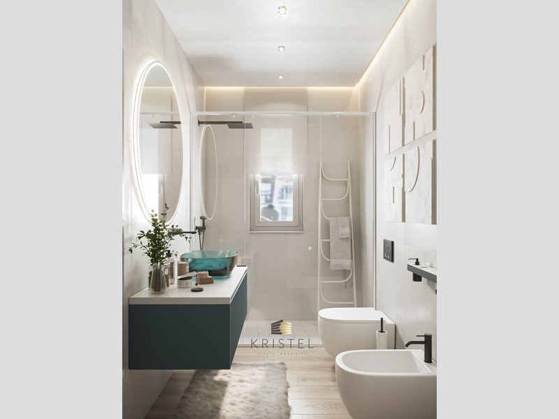 Il bagno, completo di sanitari di design a scelta del cliente, ha una finestra che garantisce la giusta luminosità ed areazione naturale.