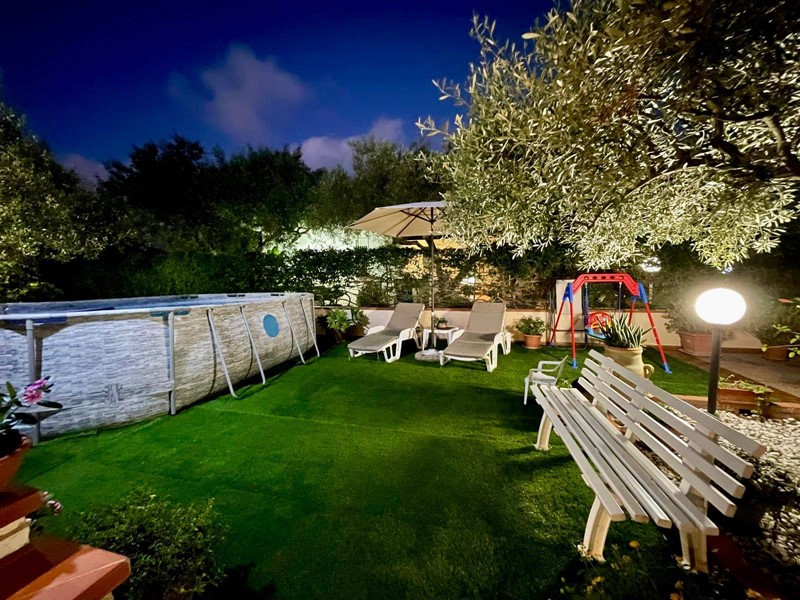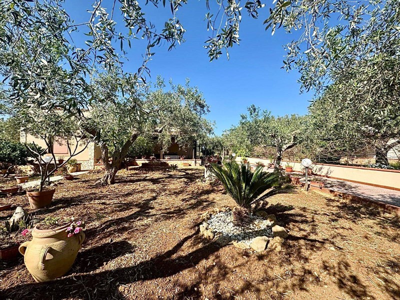 Il giardino è un vero angolo di paradiso, con alberi di ulivo, frutteti e piante ornamentali, creando un'atmosfera di naturalità e bellezza. Gli spazi esterni offrono anche la possibilità di creare un angolo con piscina e patio solarium, ideale per godere del sole siciliano in totale relax.