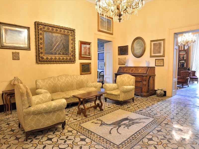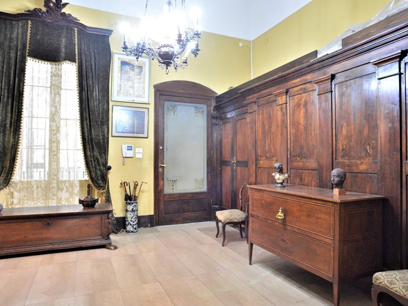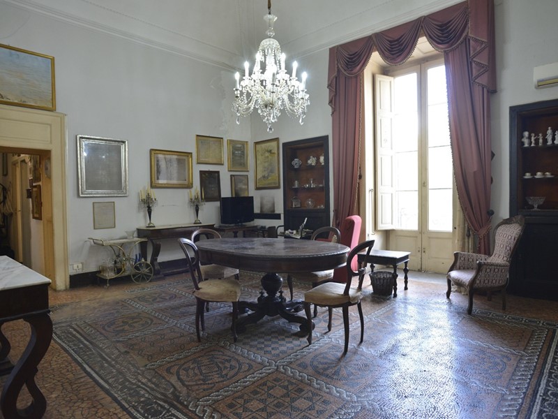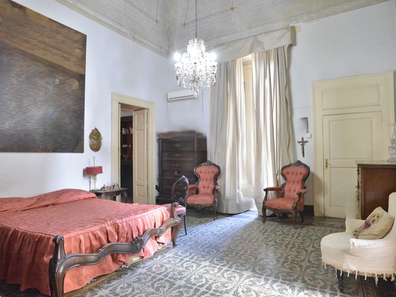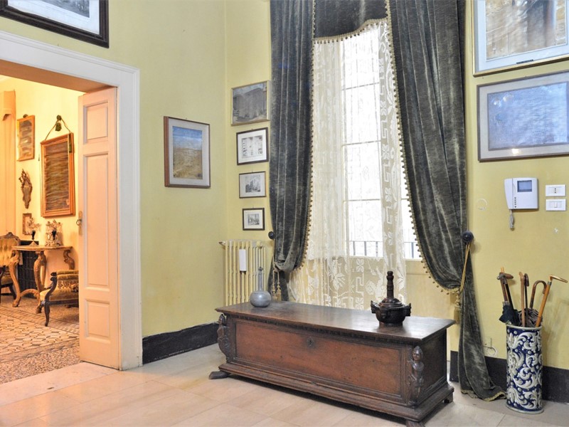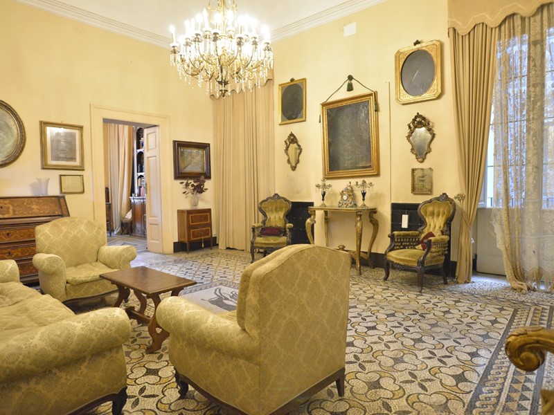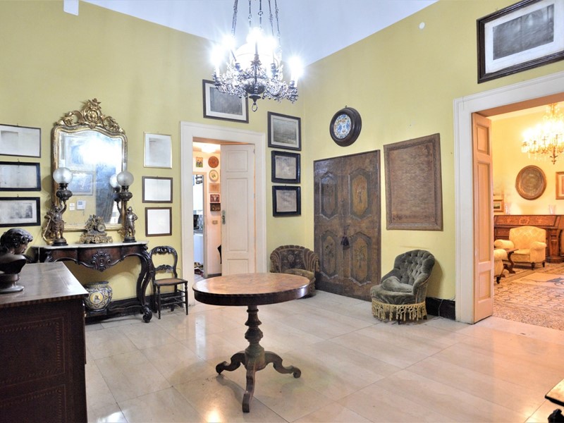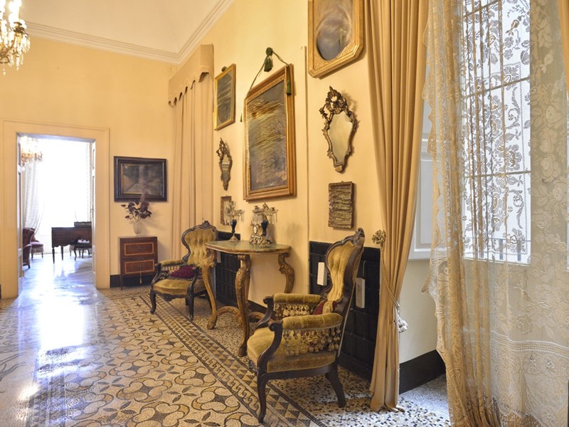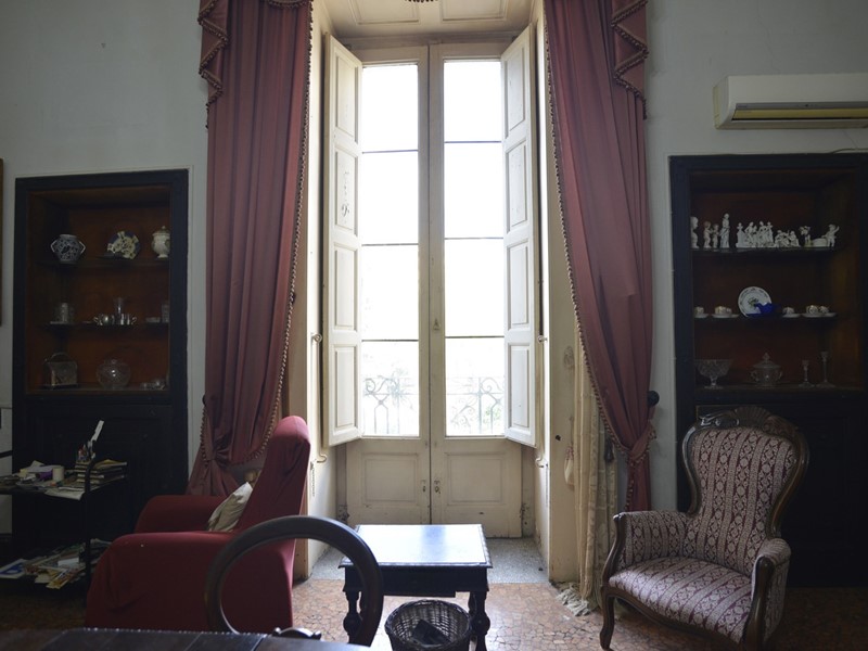 L'elegante appartamento, dal passato importante, è posto al primo piano nobile, è angolare ed è affacciato con 5 balconi su Largo Nitti Valentini e su Piazza Garibaldi. E' ampio (mq. 200 ca.), ha le volte alte mt. 5,50 ca., riccamente affrescate, i pavimenti con mosaici realizzati con grande maestria.