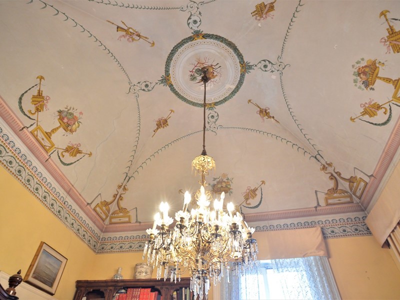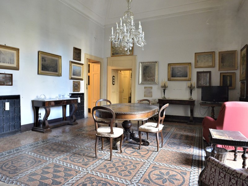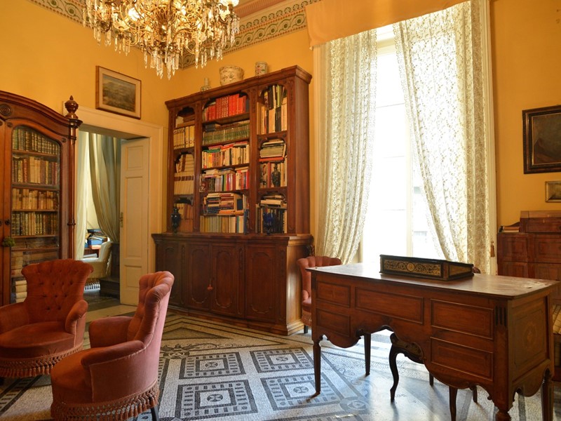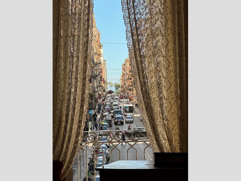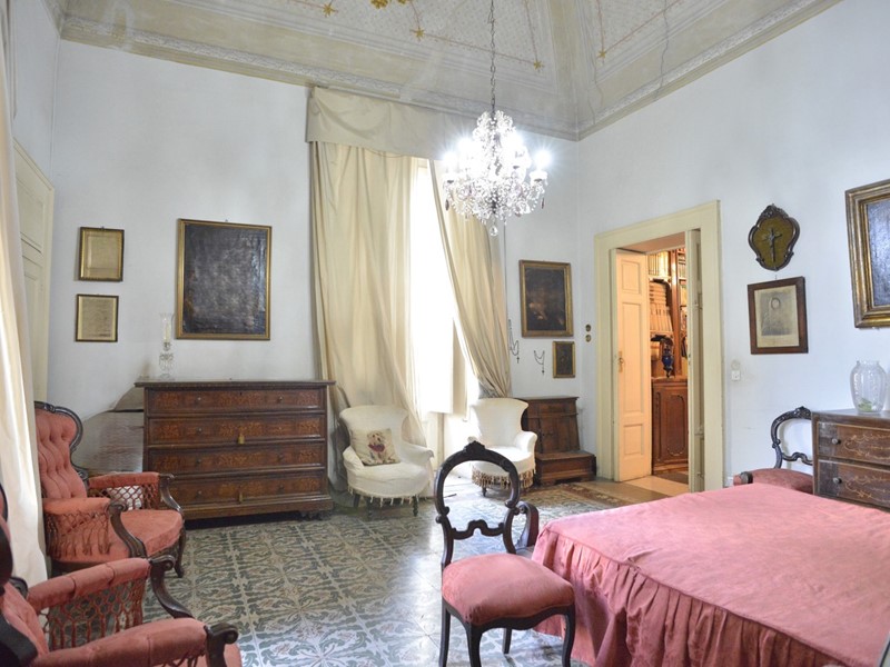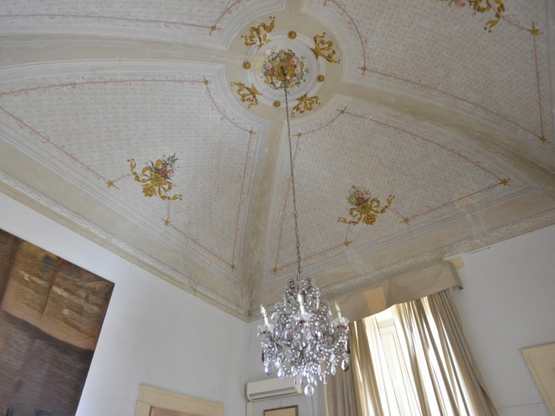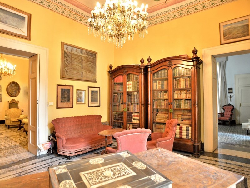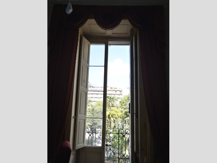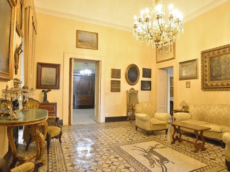L'elegante appartamento, dal passato importante, è posto al primo piano nobile, è angolare ed è affacciato con 5 balconi su Largo Nitti Valentini e su Piazza Garibaldi. E' ampio (mq. 200 ca.), ha le volte alte mt. 5,50 ca., riccamente affrescate, i pavimenti con mosaici realizzati con grande maestria.