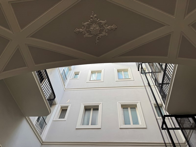 Affascinante e irripetibile appartamento, nella splendida cornice di "Palazzo Nitti Valentini", realizzato nel 1860 in stile neoclassico. L'ingresso monumentale dello stabile, con servizio di portierato, ci introduce in un androne sontuoso, impreziosito da uno scalone scenografico che ci porta ai grandi ballatoi, magicamente sospesi.