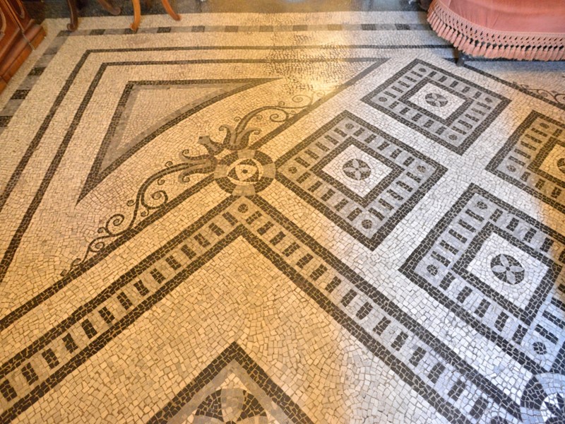 La casa affascina per incanto al primo sguardo. Entrando, il primo ambiente è ampio ed è affacciato sullo scenografico androne; il grande salotto, che è sempre stato il fulcro della casa, ricco di storia e tradizione, ha il primo meraviglioso pavimento in mosaico; la biblioteca è affacciata con una lunghissima prospettiva su Largo Nitti Valentini e su tutta Via Piccinni, ed ha le volte affrescate; la stanza angolare è luminosissima, arricchita dagli affreschi e dal prezioso pavimento, con affaccio oltre che su Largo Nitti Valentini anche su Piazza Garibaldi; la grande sala da pranzo è anch'essa caratterizzata dai mosaici di colori, dagli affreschi d'epoca e dall'atmosfere e dai decori dai toni vibranti.