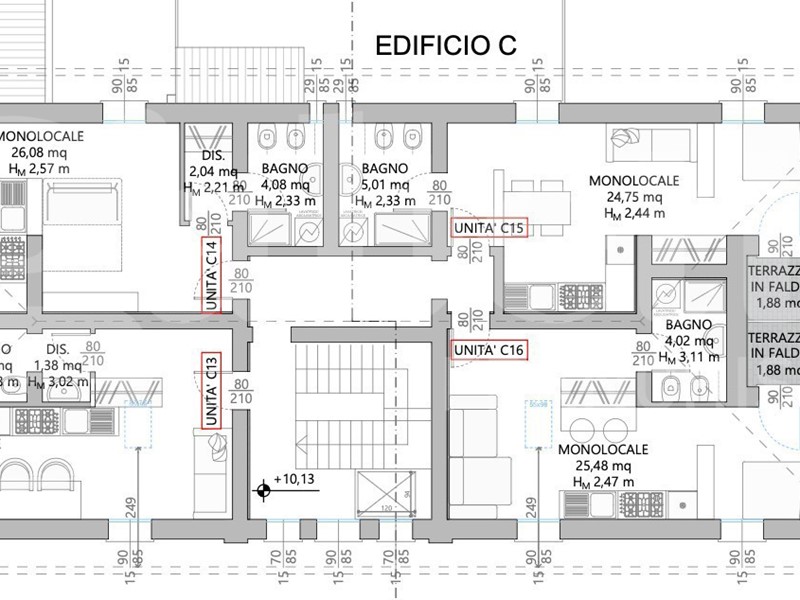APP MONOLOCALE C13: Situato al terzo ed ultimo piano dell'edificio, ingresso su unico vano con angolo cottura, zona notte, bagno e terrazzino in falda.