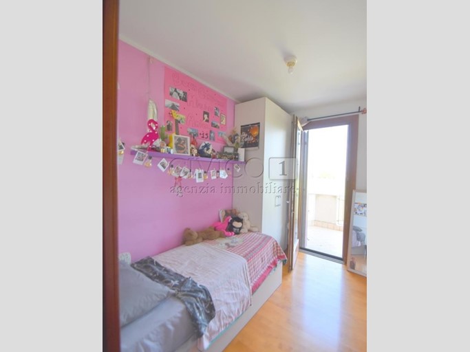 Salendo al piano superiore, la zona notte si compone di tre camere da letto, tutte di ottime dimensioni. La camera matrimoniale è dotata di una cabina armadio nata originariamente come terzo bagno (sono già presenti attacchi e scarichi), offrendo così la possibilità di personalizzare gli spazi secondo le proprie esigenze. Il piano è completato da un secondo bagno finestrato con doccia e vasca, ben rifinito e comodo per la gestione familiare quotidiana.