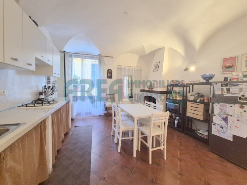Nel caratteristico borgo del Parasio, proponiamo in vendita questo interessante appartamento su due livelli con ingresso indipendente. Al piano terra troviamo l'ingresso su un ampio disimpegno/deposito dove è anche possibile lasciare le biciclette, ed una cantina che amplia la possibilità di stoccaggio. Al piano superiore troviamo una grande zona giorno con cucina in muratura a vista e camino, una stanza che prende luce dalla zona giorno dove è possibile dormire (al momento sono presenti due letti a castello), un locale deposito e il bagno. L'appartamento è in buone condizioni generali, ha il riscaldamento autonomo, ed è abitabile fin da subito. La posizione nel centro storico, l'ingresso indipendente, la comodità di avere tutto a portata di mano, rendono questo immobile ideale sia per chi intenda fare un investimento sia per chi cerca una casa per le vacanze. L'appartamento viene venduto arredato.