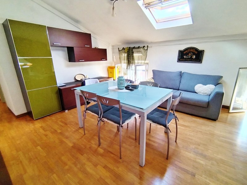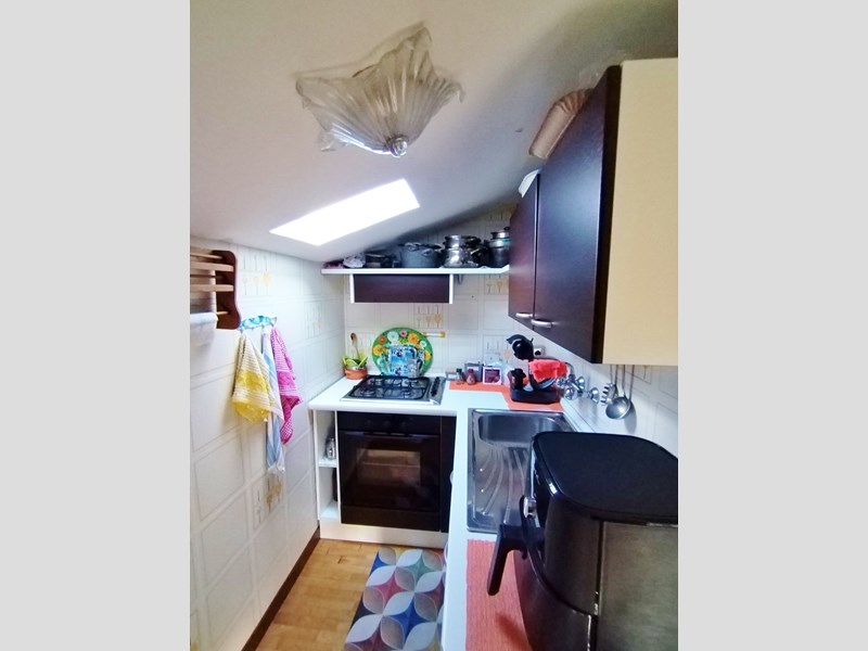 INGRESSO / DISIMPEGNO / SOGGIORNO OPEN SPACE CON CAMINETTO A VISTA (CON FINESTRA), CUCINOTTO, DISIMPEGNO CORRIDOIO, N. 1 BAGNO (CON PIATTO DOCCIA E FINESTRA) N. 1 CAMERA DOPPIA/MATRIMONIALE (CON FINESTRA E LUCERNAIO), N. 1 CAMERA MATRIMONIALE (CON FINESTRA E LUCERNAIO)