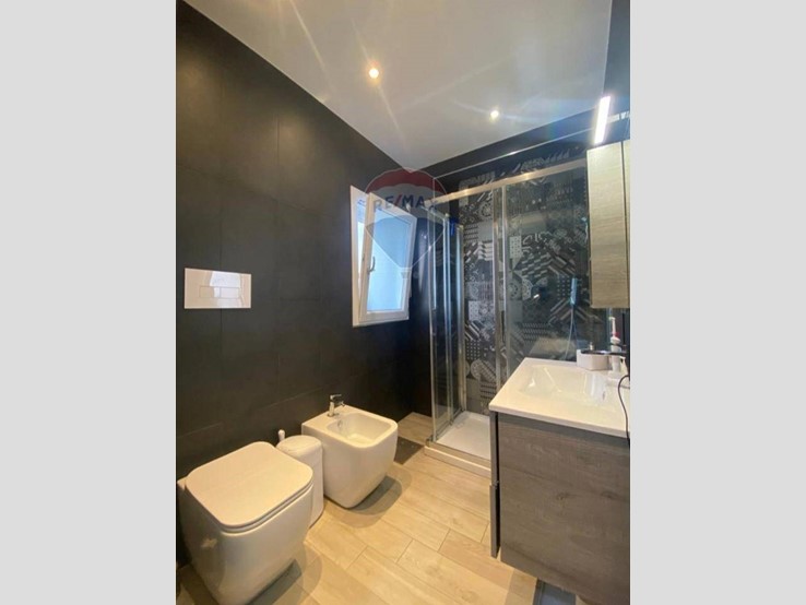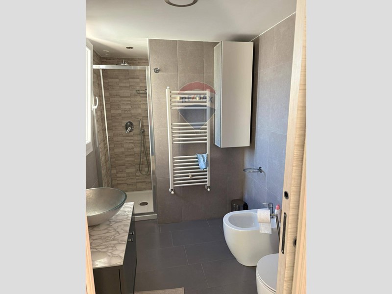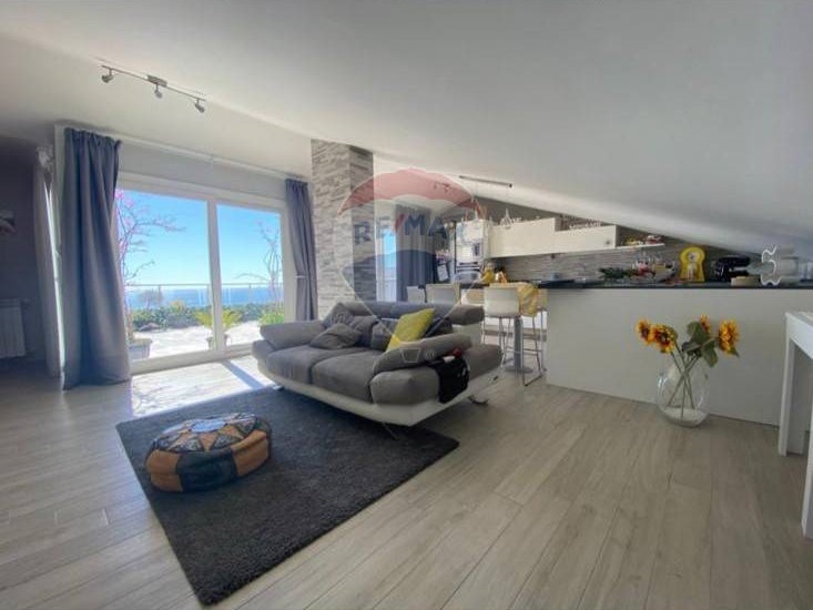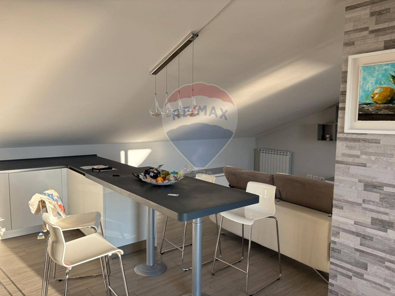 Limmobile si distingue per le finiture di pregio e la splendida vista mare godibile da entrambi i livelli. Composizione interna-Piano inferiore: ingresso su disimpegno, camera matrimoniale con cabina armadio attrezzata e balcone terrazzato, bagno en suite con box doccia, e lavanderia su balcone verandato.	Piano mansardato (collegato da elegante scala in pietra lavica levigata): ampio Open Space con cucina a vista e accesso diretto al terrazzo panoramico, perfetto per momenti di relax e convivialità; ulteriore camera da letto con balcone e secondo bagno con box doccia. Caratteristiche e dotazioni: Superficie complessiva: 128 mq (116 mq calpestabili).Pavimenti in gres porcellanato effetto parquet. Arredamento: possibilità di acquisto completamente arredato con mobili di design moderno (previo accordo con la proprietà)
