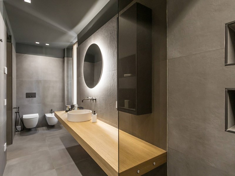 Trilocale di design con doppi servizi, terrazzo, box doppio e cantina in centro a Bergamo: