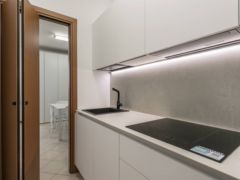 L'attico si trova al sesto e ultimo piano e si compone di: ingresso, soggiorno con balcone panoramico, cucina, camera matrimoniale e bagno finestrato con doccia. Ideale per 1 persona.