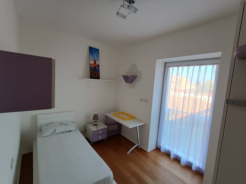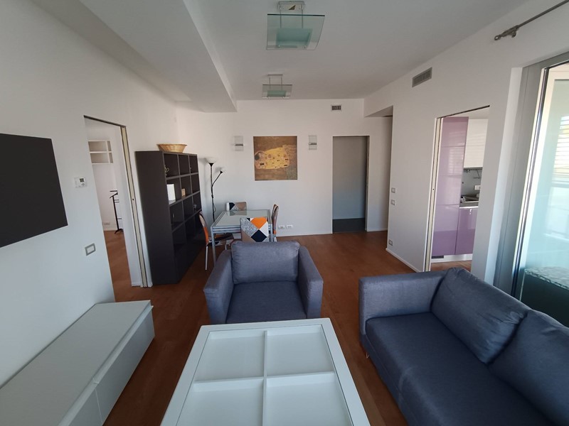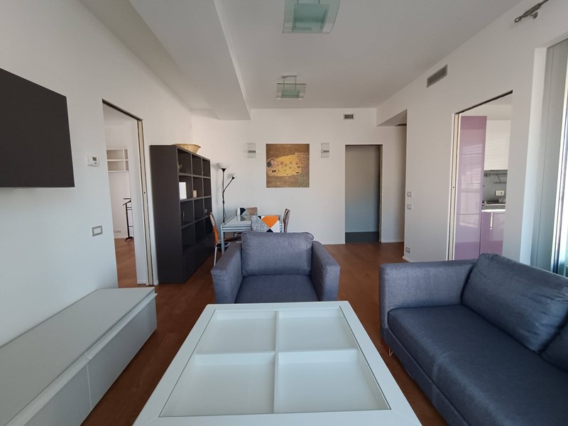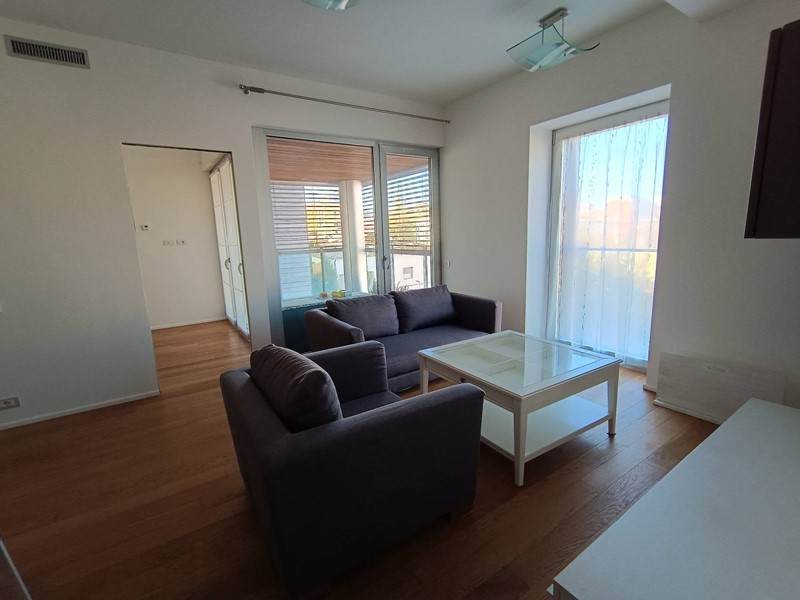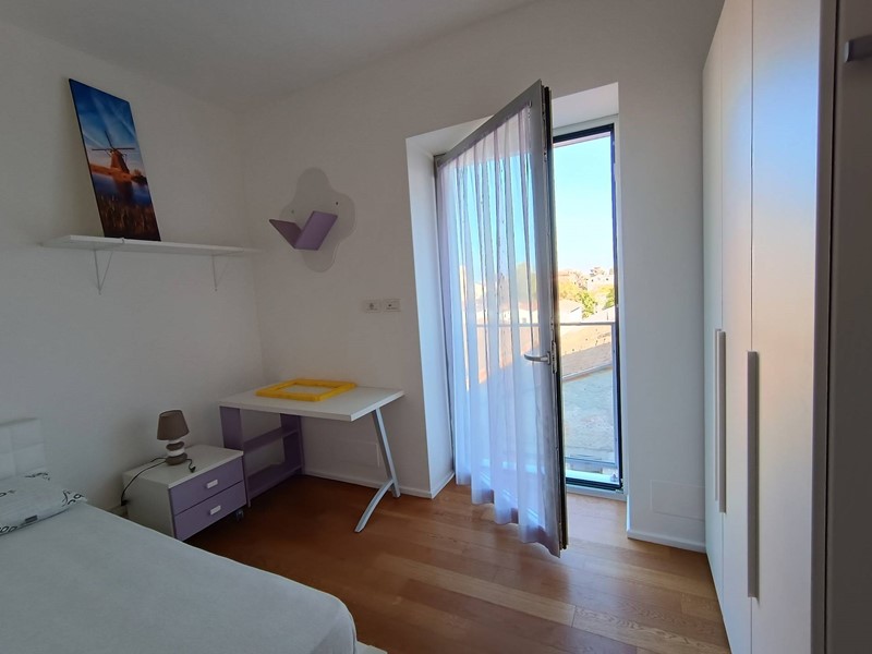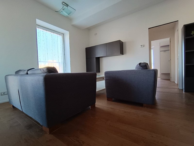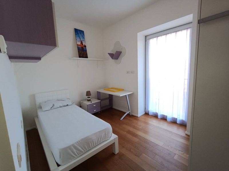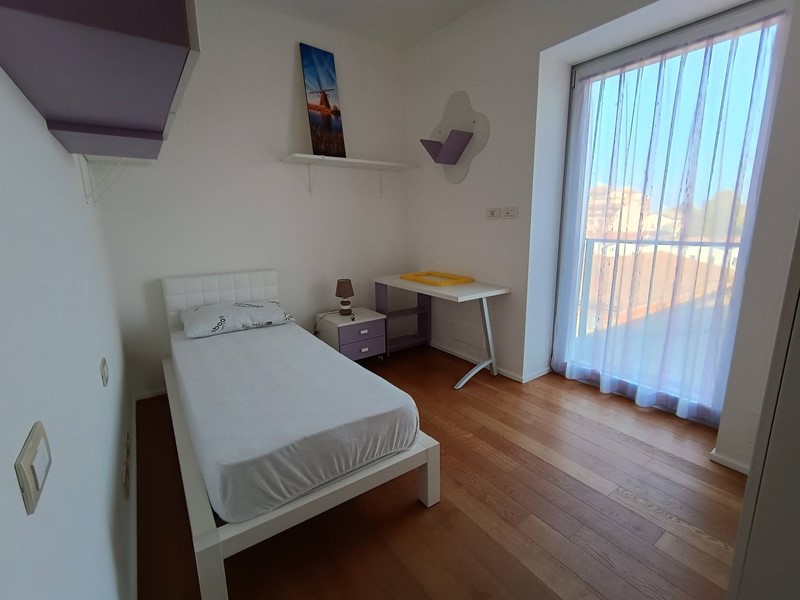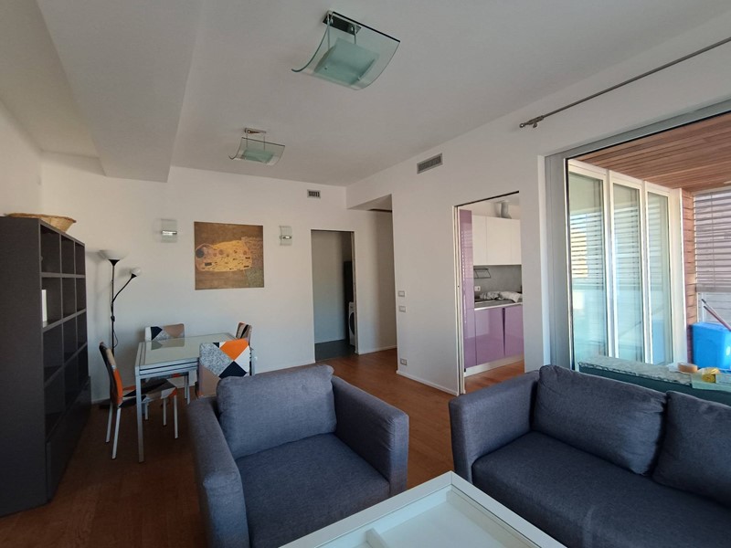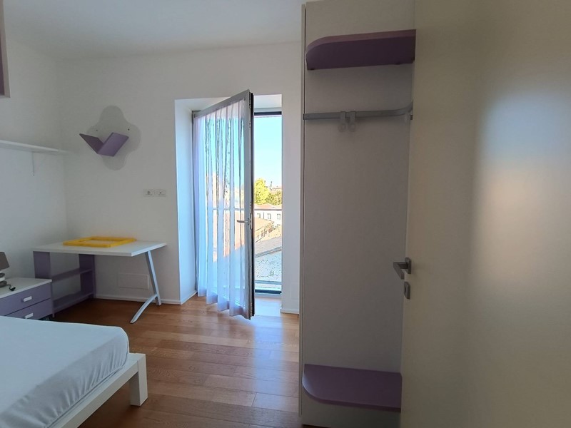 Ingresso su living open space, accesso a bagno ospiti e piccola lavanderia, cucina separata e adiacente a una splendida loggia con ampia vista sui tetti. Nella zona notte troviamo due camere spaziose (una matrimoniale ed una singola molto grande) e un bagno con doccia.