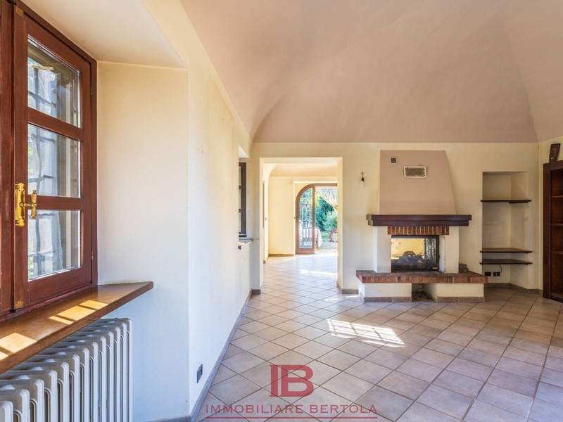 al piano terra si viene accolti da un ampio ingresso che conduce alla zona giorno, composta da una grande cucina esposta a sud con affaccio diretto sul parco e da un salone luminoso separato solo da un suggestivo camino a legna bifacciale, vero cuore della casa. Completano il piano un bagno e una spaziosa lavanderia.