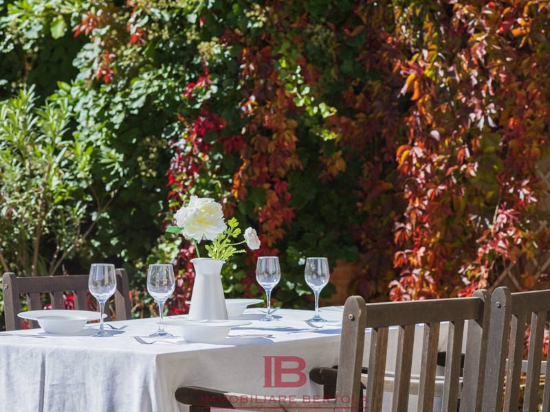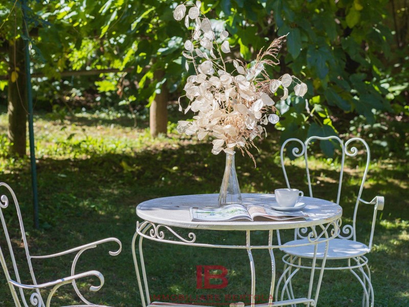 Immersa nel verde e circondata da antiche mura in pietra, la proprietà custodisce un incantevole parco piantumato di circa 2.400 mq, unautentica oasi di pace, privacy e fascino daltri tempi.