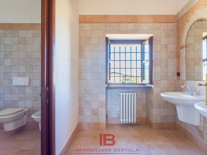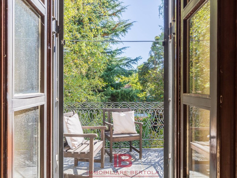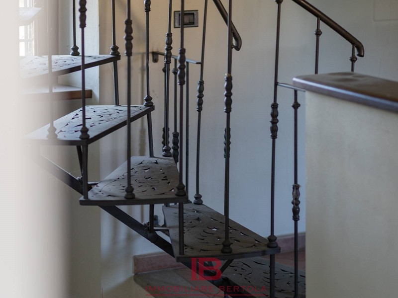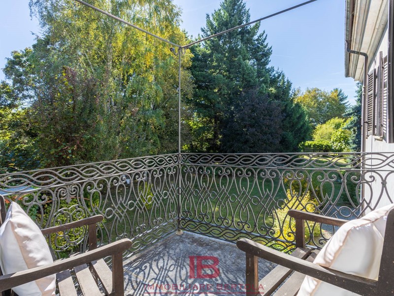 Al piano superiore, la zona notte si compone di quattro ampie camere, tutte collegate tra loro da antiche porte in legno e con affaccio sul parco, una con camino, una zona cabina armadio oltre a un bagno con antibagno e a un delizioso terrazzino panoramico che regala una vista fiabesca sullintera proprietà.