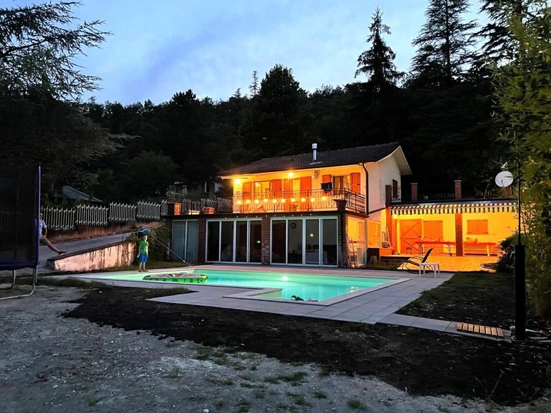 Fortunago (PV) VENDITA in uno dei borghi più belli dItalia, in splendida posizione panoramica, inserita in tranquillo contesto residenziale, proponiamo in vendita casa completamente indipendente composta al piano terra da spaziosa taverna con uscita al portico verandato, studio, bagno, locale caldaia e riposiglio. Al primo piano ampio soggiorno con cucina a vista e con uscita al terrazzo panaromico, disimpegno, camera matrimoniale, camera da letto e bagno. Completano la proprietà piscina sul panorama e 10.000 mq circa di terreno recintato. Limmobile è dotato di zanzariere, pozzo, raccolta di acqua piovana, aria condizionata e fotovoltaico