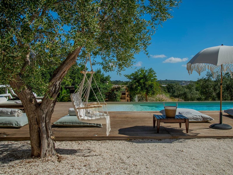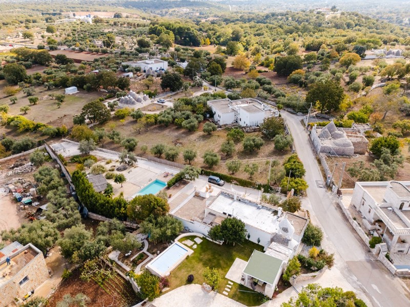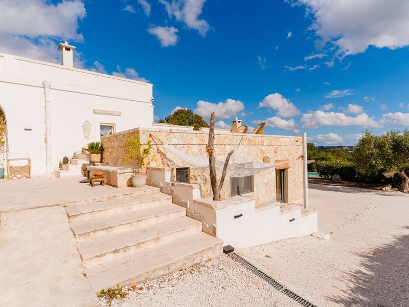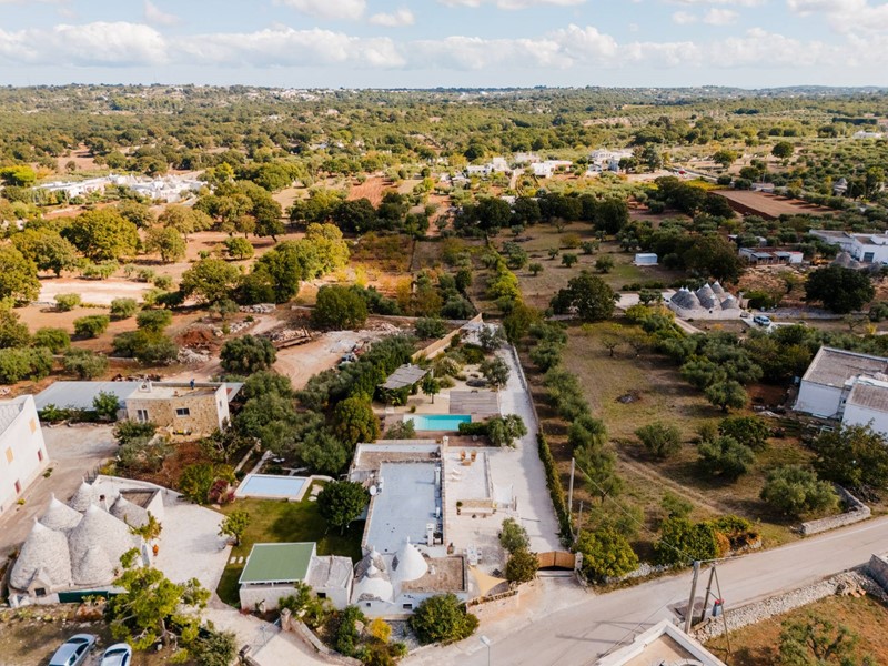L'esterno, caratterizzato da ampi spazi ombreggiati, gode di viste panoramiche impareggiabili sulla Valle D'Itria.