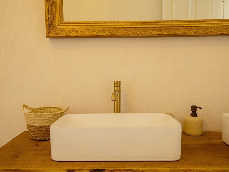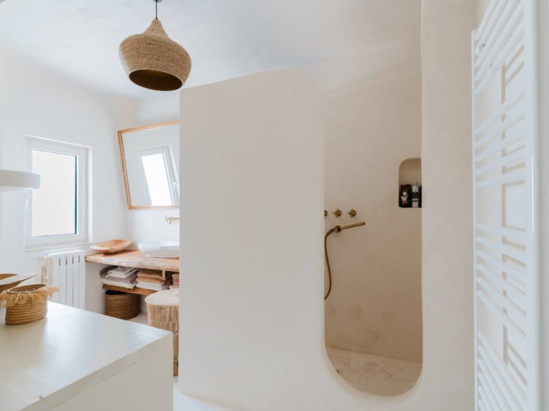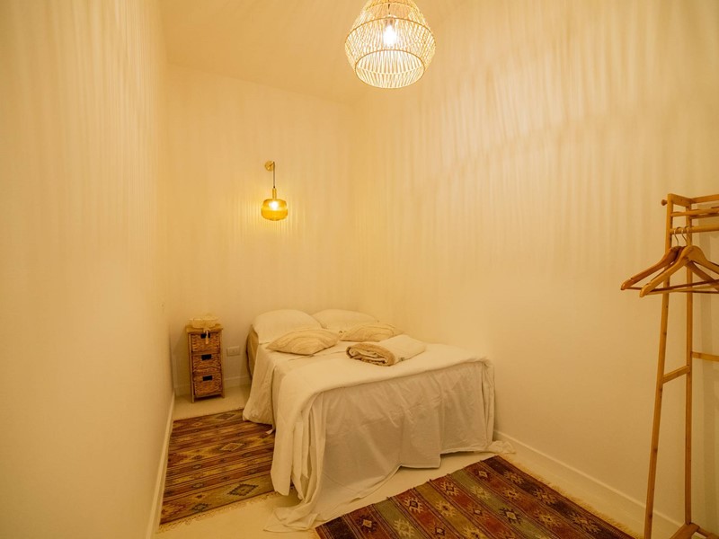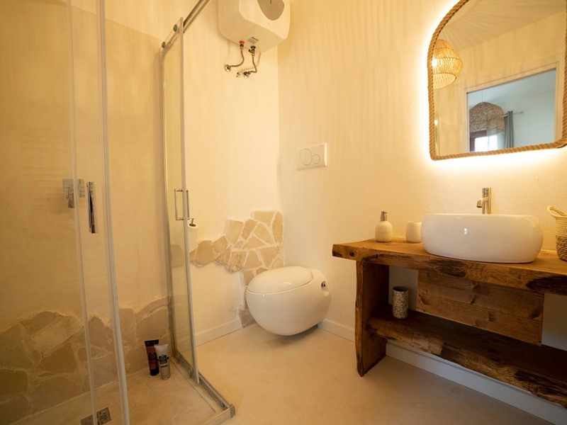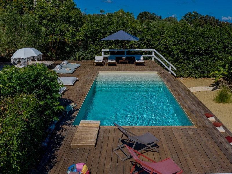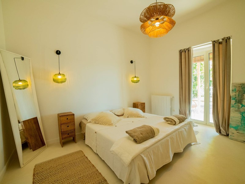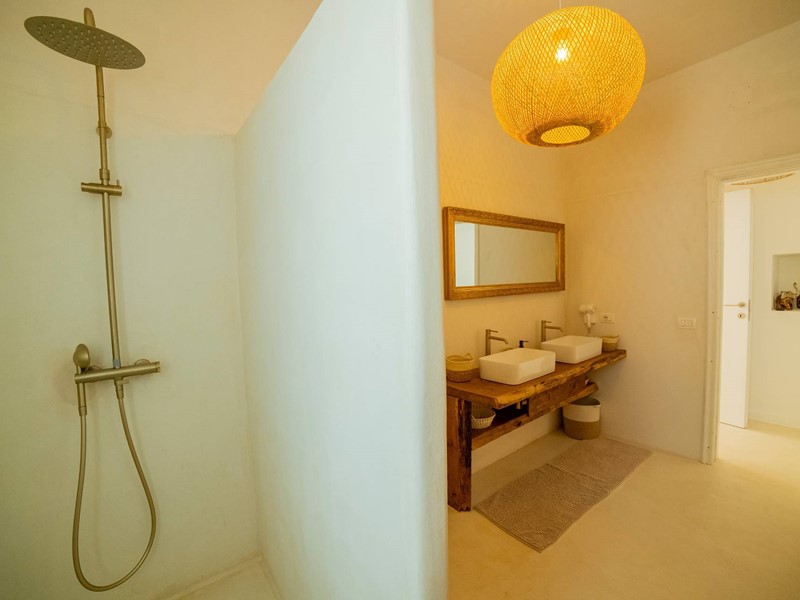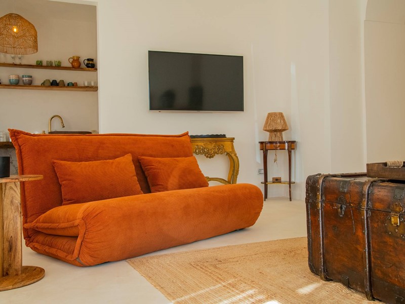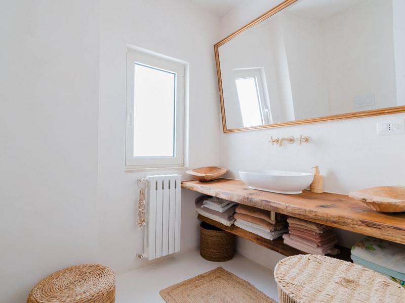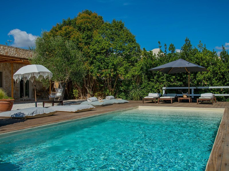 Dal corridoio si accede alla zona notte composta da due camere matrimoniali con accesso autonomo sulla piscina, una terza camera da letto e un comodo bagno. La scelta tecnica ed estetica, per valorizzare questi antichissimi trulli, è stata quella di utilizzare solo materiali naturali, come la pietra, la calce, rendendo gli ambienti molto accoglienti e di grande suggestione!
